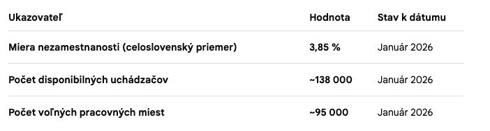 Aktuálny pohľad na trh práce na Slovensku k začiatku roka 2026 ukazuje, že situácia je stabilná, avšak pretrvávajú extrémne regionálne rozdiely.