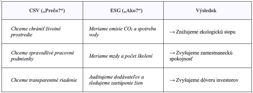 - CSV ("Prečo?") / ESG ("Ako?") → Výsledok:
