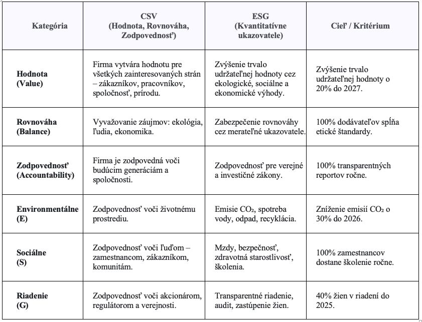 CSV + ESG –>>> Trvalo Udržateľná Stratégia (príklad na obrázku).
